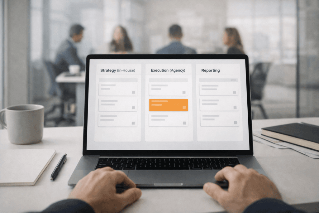 Here’s what most brands don’t realize: the agency vs. in-house decision isn’t binary. The highest-performing brands run a hybrid model—combining in-house strategic ownership with external specialist support.